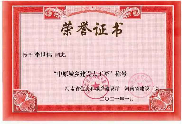 华体会手机网页版登录入口-华体会(中国)李世伟同志获“中原城乡建设大工匠”称号